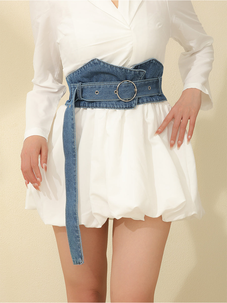 Women's Casual Denim Ring - Buckle Wide Waist Belt