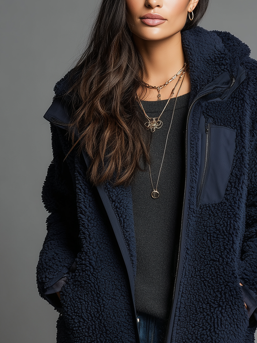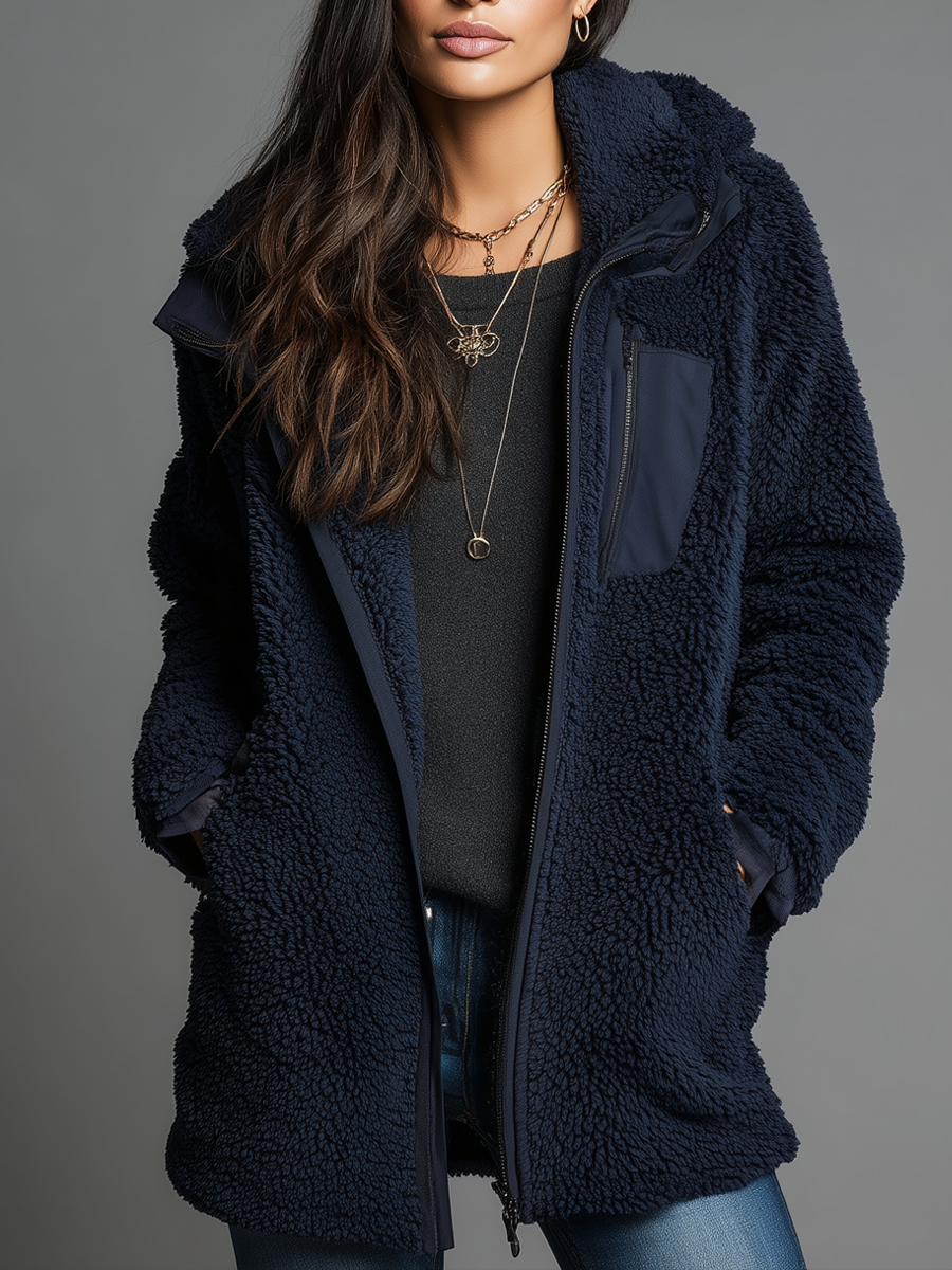 Vintage Zipper Pocket Teddy Fleece Fitted Jacket