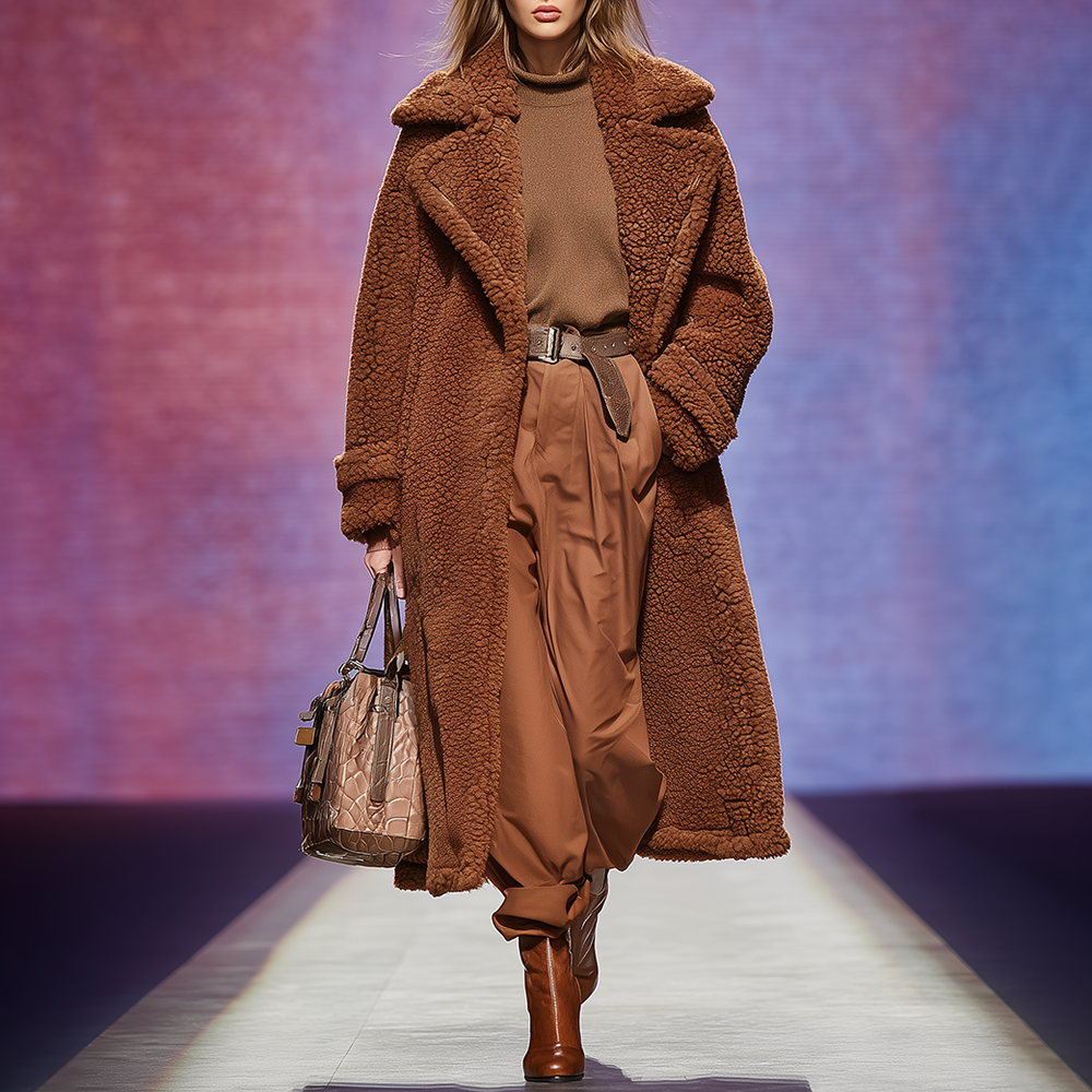 Vintage Suede Lapel Collar Mid-Length Coat Jacket